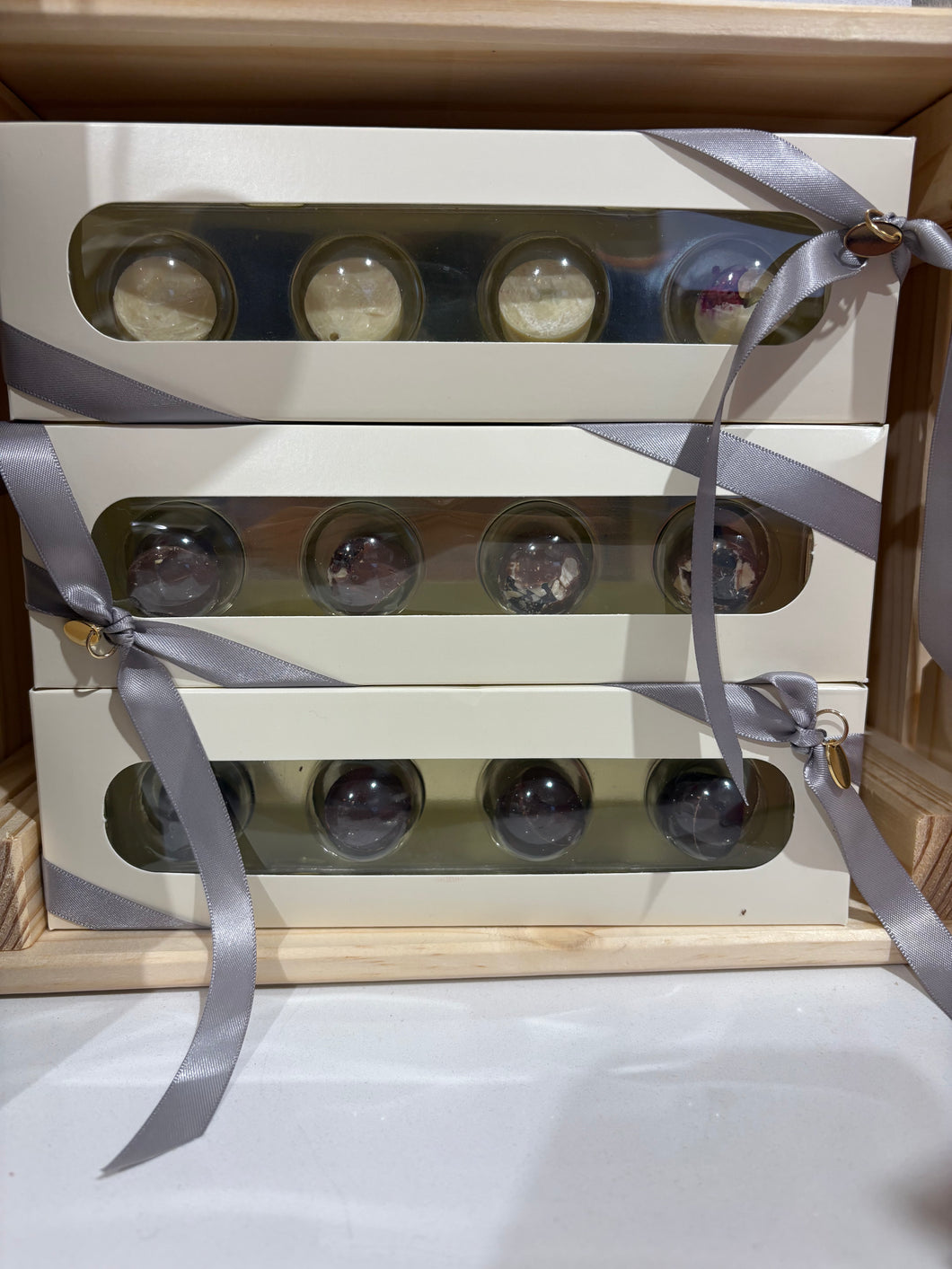 Handcrafted chocolate specially made in Tyler, Texas—because homemade always tastes better. Start with The Parcel for a full flavor experience, or go classic with our Butter Crunch or Tortoise Shell varieties. Each piece is pure indulgence. Looking to sweeten your Valentine's gift? Add a box of our decadent bon bons and let every bite whisper "I love you." Simple pleasures, extraordinary taste.