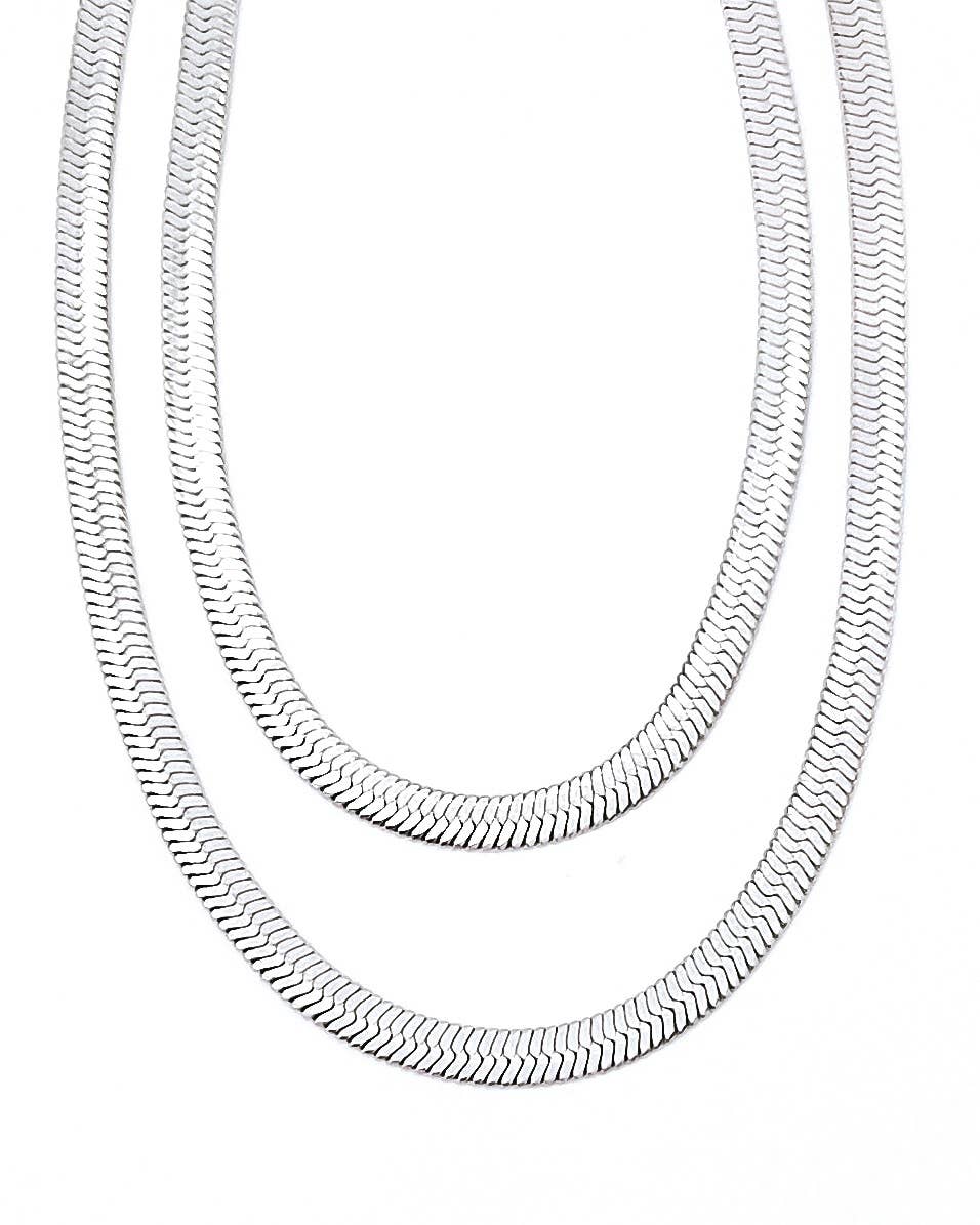 Mia Thick Silver Herringbone Necklace
