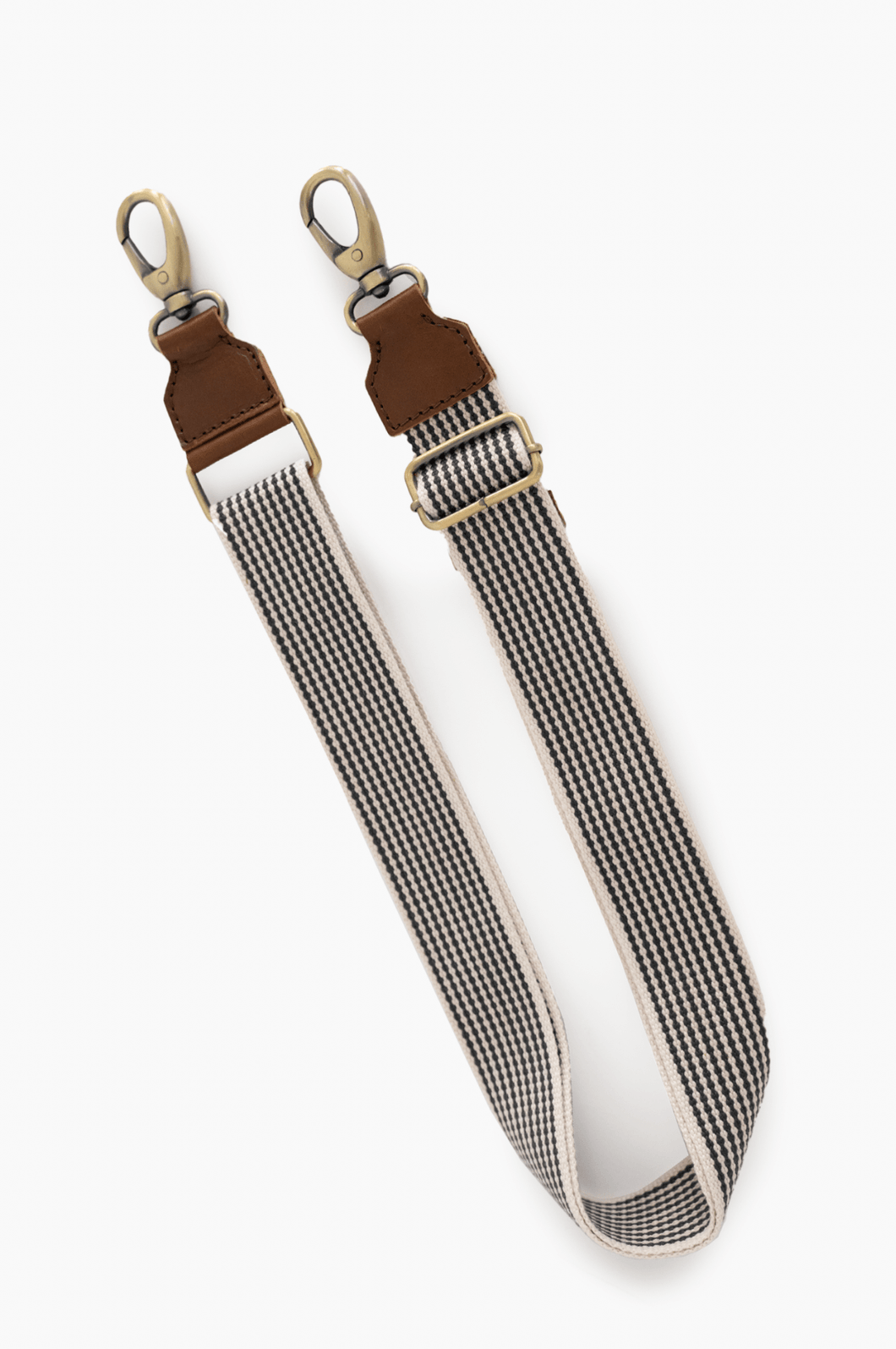 Add a little extra style and comfort to your favorite bag with our Woven Crossbody Strap. This versatile strap is handcrafted and features a minimal woven black-and-white pattern, making it easy to pair with any outfit. The full-grain leather accents and brass hardware add a touch of sophistication that elevates (wink wink) any outfit. Designed to pair perfectly with our crossbody bags, this strap is the perfect add-on to customize your bag and infuse it with a touch of individuality. Not only does it add a little something extra to your bag, but it also provides added comfort and adjustable length. Whether you're running errands or exploring a new city, this crossbody strap will keep your hands free and your essentials close. Ethically made by skilled artisans in India, this strap is not only a stylish addition to your wardrobe but also helps kick-start small businesses in vulnerable communities across the globe. Upgrade your bag game with our Woven Crossbody Strap.