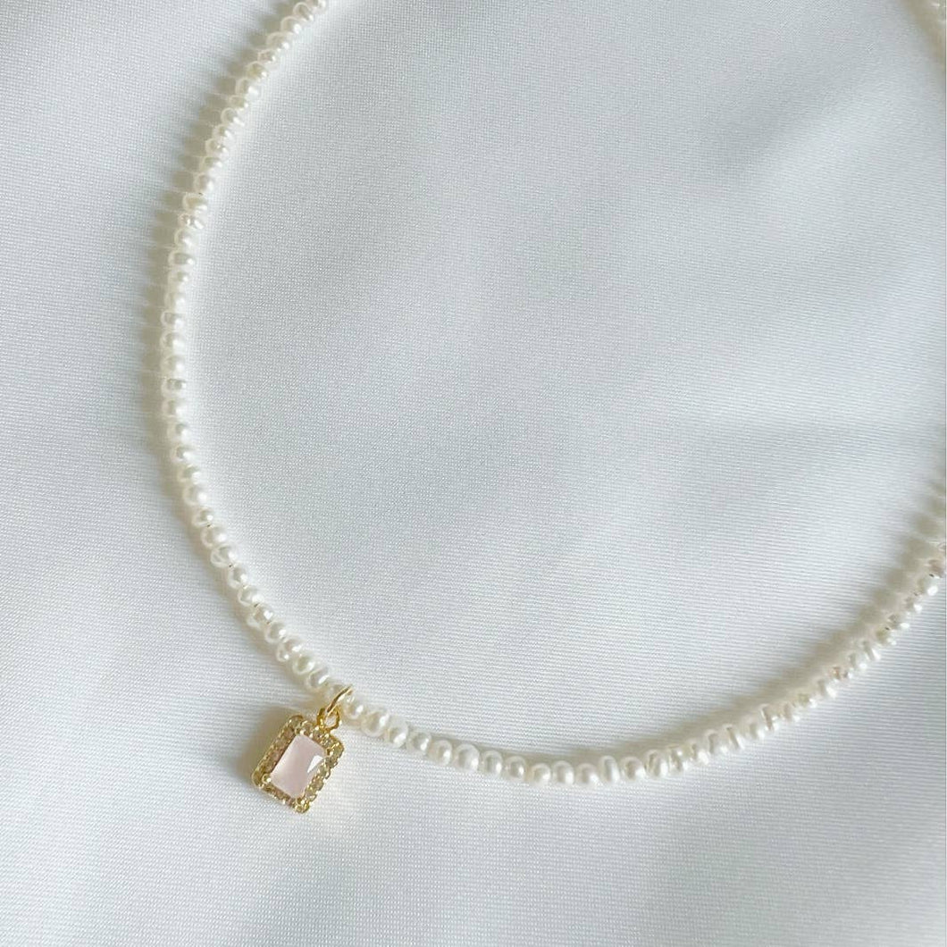 Genuine freshwater pearls and gold filled pink pendant; adjustable. - Length: 15” + 2” gold filled extender - Genuine 3-3.5mm freshwater pearls - Pendant: 9x7mm - Lobster clasp - Each natural pearl is unique and therefore no two are alike. Pearl, colors and sizes may vary. - Handmade with the highest standards & quality materials This item is made to order and shipped with love from our studio located in West Chester, PA. *FREE GIFT WITH EVERY TRUE BY KRISTY REORDER*