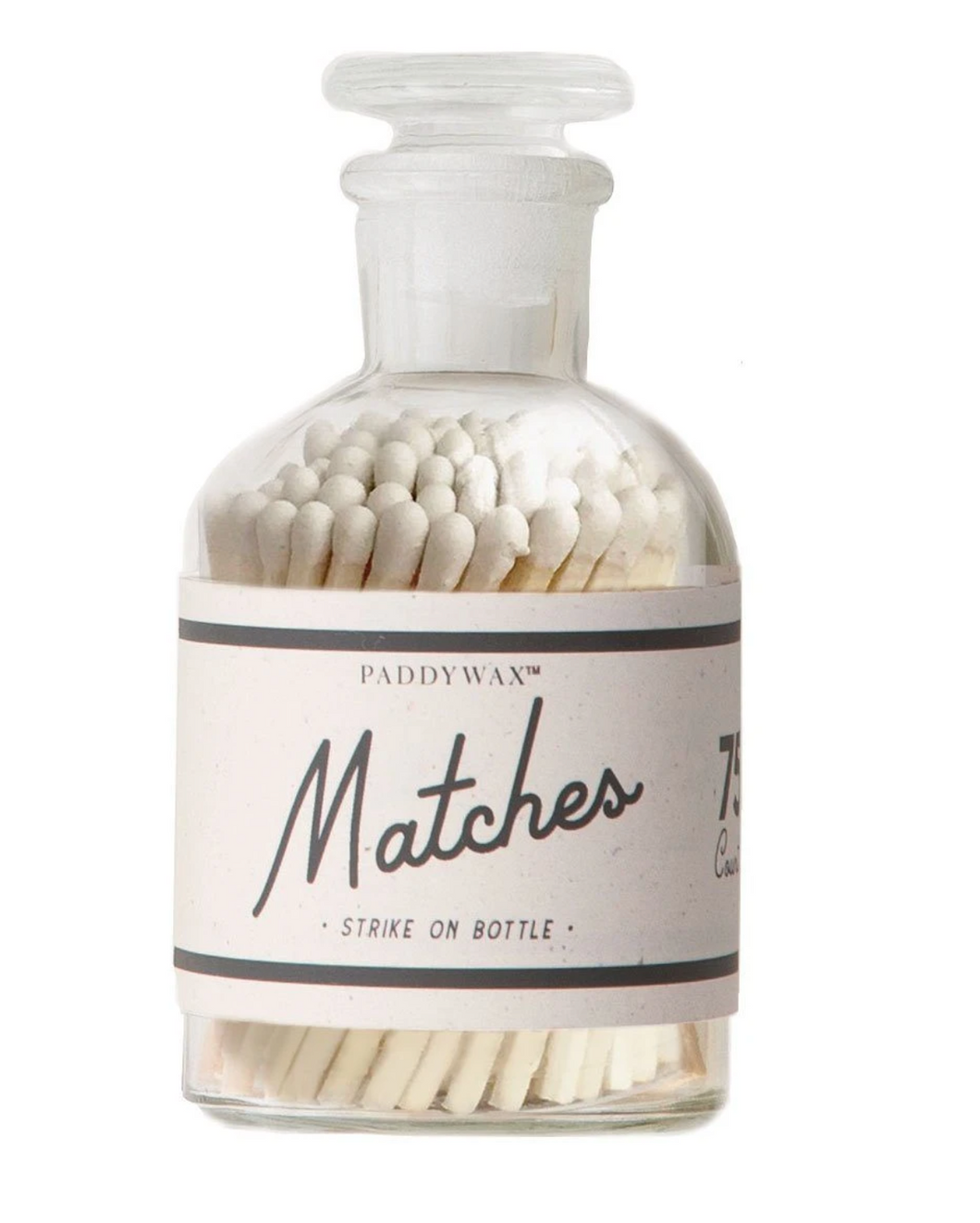 Now you don't have to get off the couch to get that ugly lighter from the drawer. You don't even have to go to a different website to make sure your Paddywax candles stay lit. This luxe glass bottle is full of 75 wooden matches and features a strike strip on the back where you can light your match!