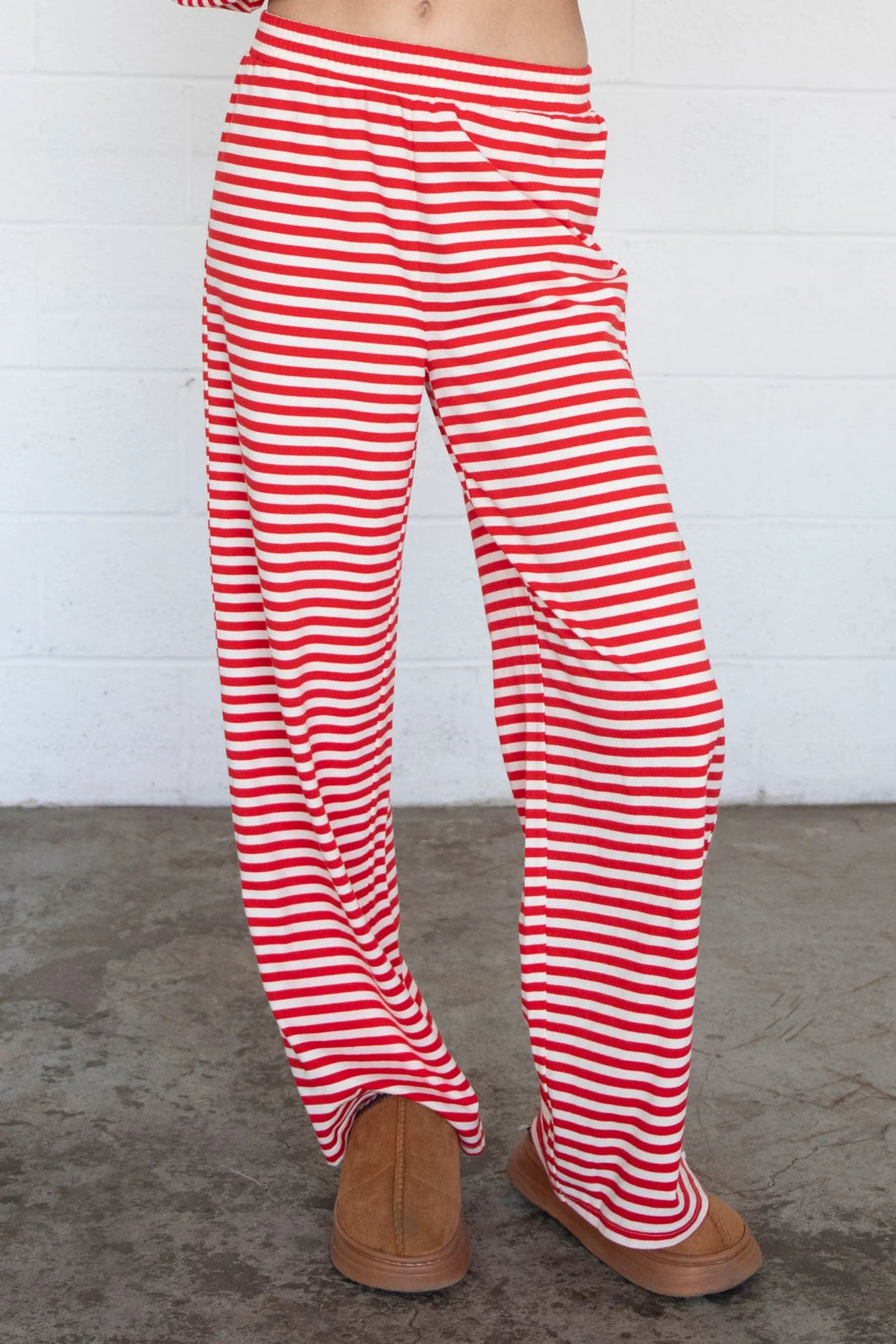 Get ready for some serious fun with "The 'Where's Waldo?' Set"! This quirky set includes a red and white striped oversized long sleeve tee and matching lounge bottoms. Perfect for those laid-back days when you want to stand out (or blend in?) with your surroundings.